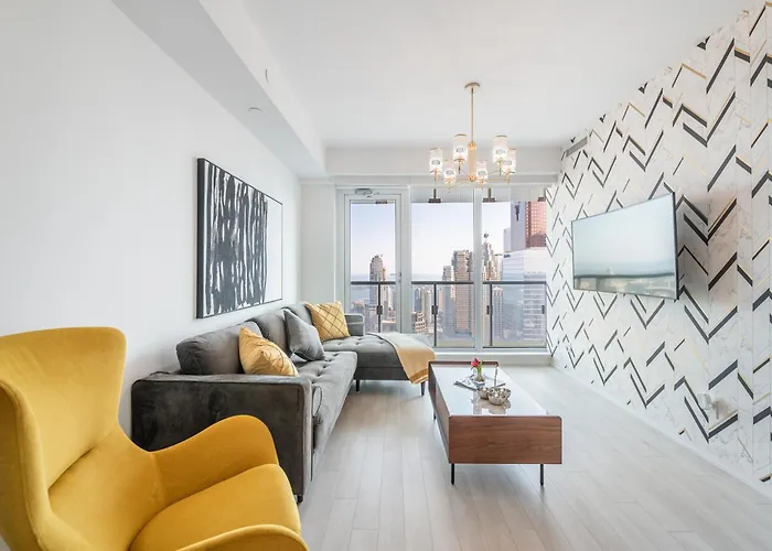 Designer 1Br Suite With Cn Tower, Skyline View Toronto de 59 m² est situé dans le voisinage de "Yonge-Dundas" à Toronto, à 5 minutes à pied du Toronto Eaton Centre.
